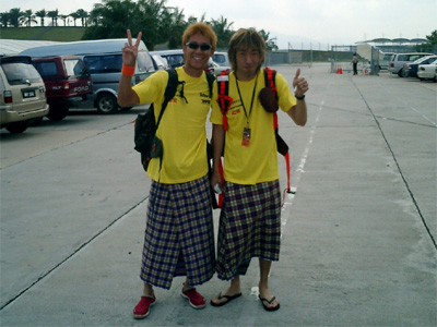 JGTC、セパンラウンドの前に服部さん、#6組、ウチの両親というメンバーで東側の浜辺に行った。 そこでは、暑さに身体を慣らしたり、良い時間が過ごせた。 その中でも現地式お祈りを兼ねたマッサージは気持ち良かったなぁ〜! マッサージの後に着用したスカートの様な民族衣装をプレゼントされた。 これは、ただ筒状になった布をバスタオルを巻く様に両端で絞って着る。 服部さんが『セパン、これで通勤するぞ!』って言うんで一応持って帰ったけど、ほんまに着て行くとは・・・。 僕はまだしも、服部さんて若いよなぁ!!